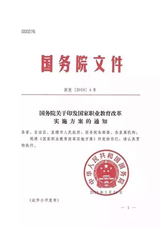 根据方案,今年我国将启动1+X证书制度试点。鼓励职业院校学生在获得学历证书的同时,积极取得多类职业技能等级证书,拓展就业创业本领,缓解结构性就业矛盾。