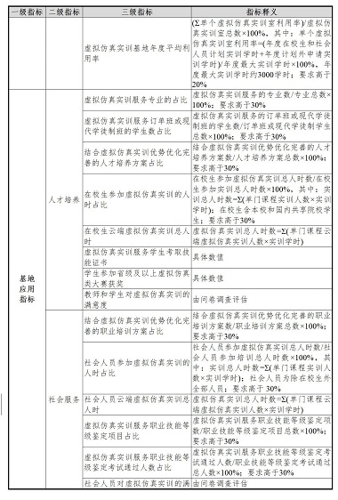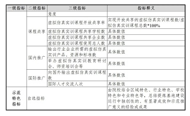根据全国多数院校培育项目的建设完成情况,教育部科技发展中心将适时组织专家组,按照“固化成果、突出特色、示范引领、量化考核”的指导思想,依据表1所示建设效能数据指标,对各院校职业教育示范性虚拟仿真实训基地培育项目进行效能评价。效能评价采取评估建设数据和总结报告、实地抽查复核等形式开展,重点考查2020年基础数据上的建设增量及其成效。