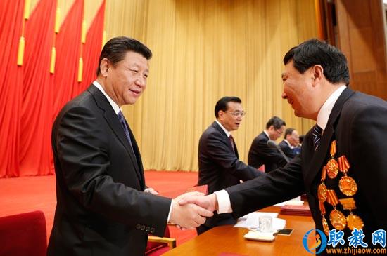 习近平等党和国家领导人向全国劳动模范和先进工作者颁发荣誉证书。新华社记者 鞠鹏/摄