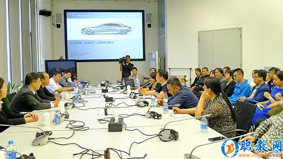 为贯彻落实国务院《加快发展现代职业教育的决定》要求,深化现代制造业领域的产教融合,建立职教集团与大型企业新型合作关系和政校企行多元合作平台,在北京职业教育宣传月内,市教委委托北京现代制造职教集团,组织本市23所中高职院校校长和骨干教师,于5月7日走进了位于亦庄的北京奔驰汽车有限公司。