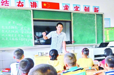 9月3日,湖北省郧县白桑关镇东良完全小学教师赵琳在给学生上课。2012年毕业于南开大学的赵琳,今年通过了北京大学研究生复试,但他却主动放弃了读研,回到家乡郧县当资教生,实现自己多年的教育梦想——当一名大山深处的乡村教师。王小虎 摄
