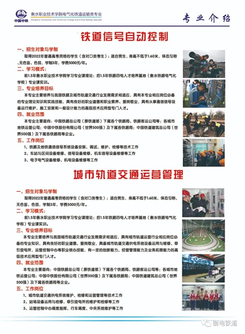 衡水职业技术学院2022年电气化铁道订单班招生简章